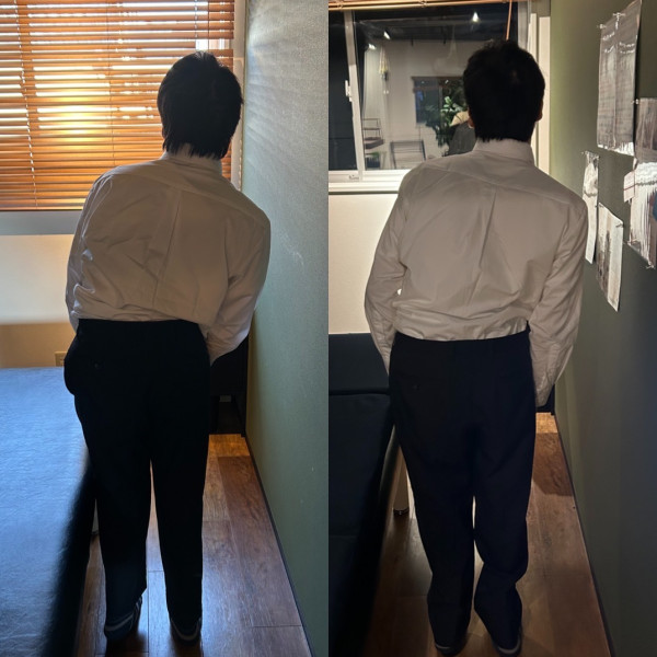左肩の下がりと、肋骨の左右差、腰痛を治したいと来院されました。 20代女性 ※効果には個人差があります |
